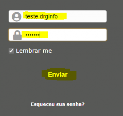 - Após preencher com seus dados clique no botão ENVIAR que está logo abaixo dos campos usuário e senha, conforme imagem abaixo: